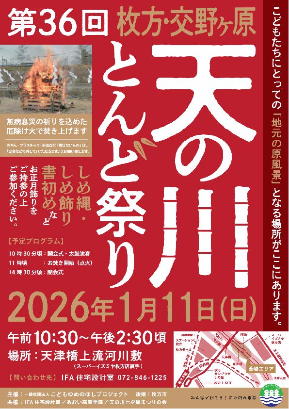 2026年1月11日に天の川でとんど祭りが開催されますので、ご案内させていただきます。